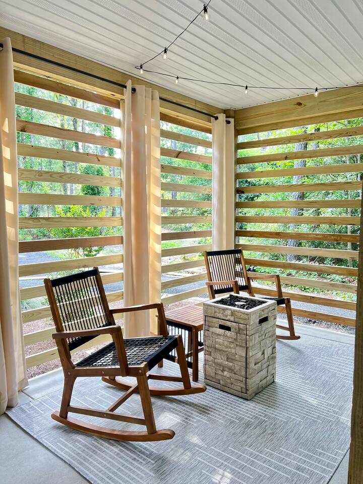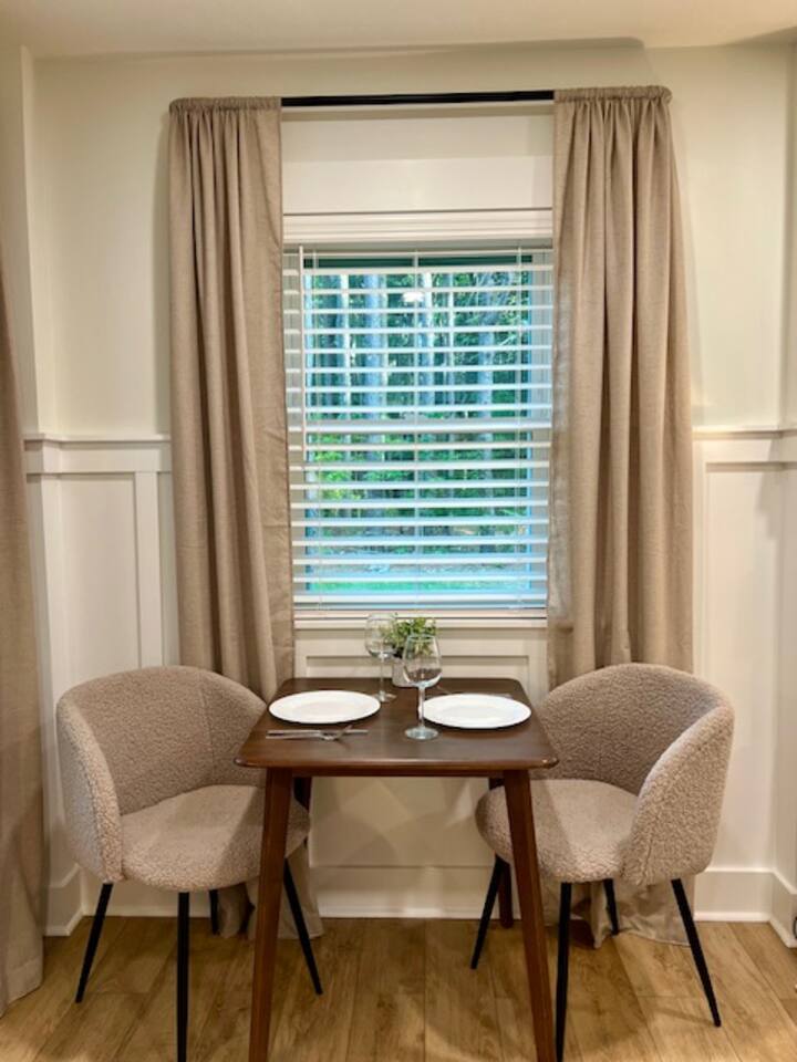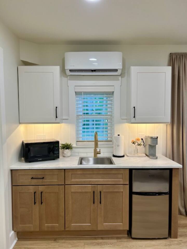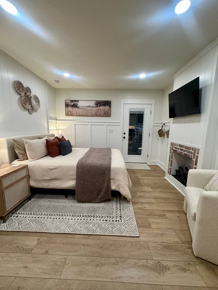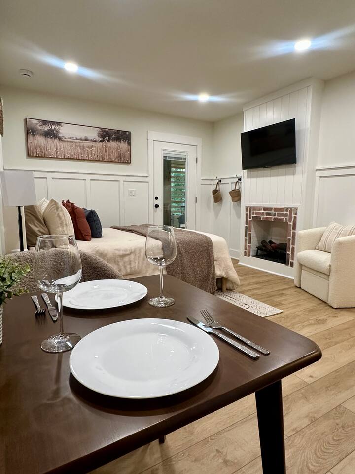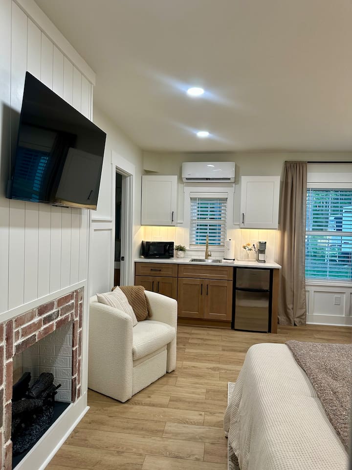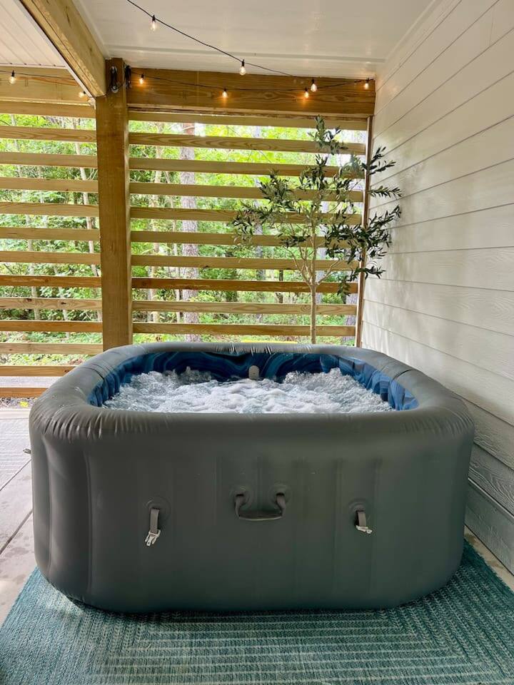 Welcome to Coastal Roots – A Nestled Couples Retreat built in 2024 in the Northern Outer Banks Whether you’re planning a romantic getaway, celebrating a special occasion, or simply craving quiet time to unwind, Coast Roots offers the perfect blend of nature, comfort & OBX convenience. Other Things to Note : We live upstairs however there is no connecting stairway into the downstairs unit and is completely separated. We insulated between floors and added quiet clips before drywall to reduce noise transfer so feel free to turn your tv up as loud as you’d like :). The Ground Level Apartment : • Private entrance • Plush queen bed with soft linens & Pillows • Bath & Beach Towels • Smart TV & high-speed WiFi • Climate-controlled comfort • Electric Fireplace that puts off heat Kitchenette : Enjoy everything you need for an easy, stress-free stay: • Mini fridge • Microwave • Keurig coffee maker • Toaster • Plates, bowls, mugs & silverware • Complimentary Coffee, Creamer, Tea • 2 Bottles of Water Bathroom : • Full private bathroom with tiled shower & glass doors. • Shampoo, Conditioner, Soap, Body Wash • 2 Bath & 2 Beach Towels • Iron/ Ironing Board • Hairdryer • Toilet Paper & Paper towels Outdoor Area : • Private hot tub • Gas fire pit • Comfy seating • Dual-head outdoor shower — perfect after a Beach day • Peaceful wooded views Prime OBX Location • 5 minutes to Wright Memorial Bridge • 12 minutes to Outer Banks beaches • 2 minutes to Buffalo City Distillery • 5 minutes to H2OBX Water Park • Close to Duck, Kitty Hawk & Kill Devil Hills • Nearby Starbucks, grocery stores, dining & Golf Courses Whether you’re planning a romantic getaway, celebrating a special occasion, or simply craving quiet time to unwind, Coastal Roots delivers a serene escape that feels worlds away yet close to everything. ⸻ Why Guests Love Coastal Roots : ✔ Brand new construction ✔ Hot tub + fire pit experience ✔ Ideal for couples & solo travelers ✔ Close to beach & OBX attractions ✔ Relaxing atmosphere