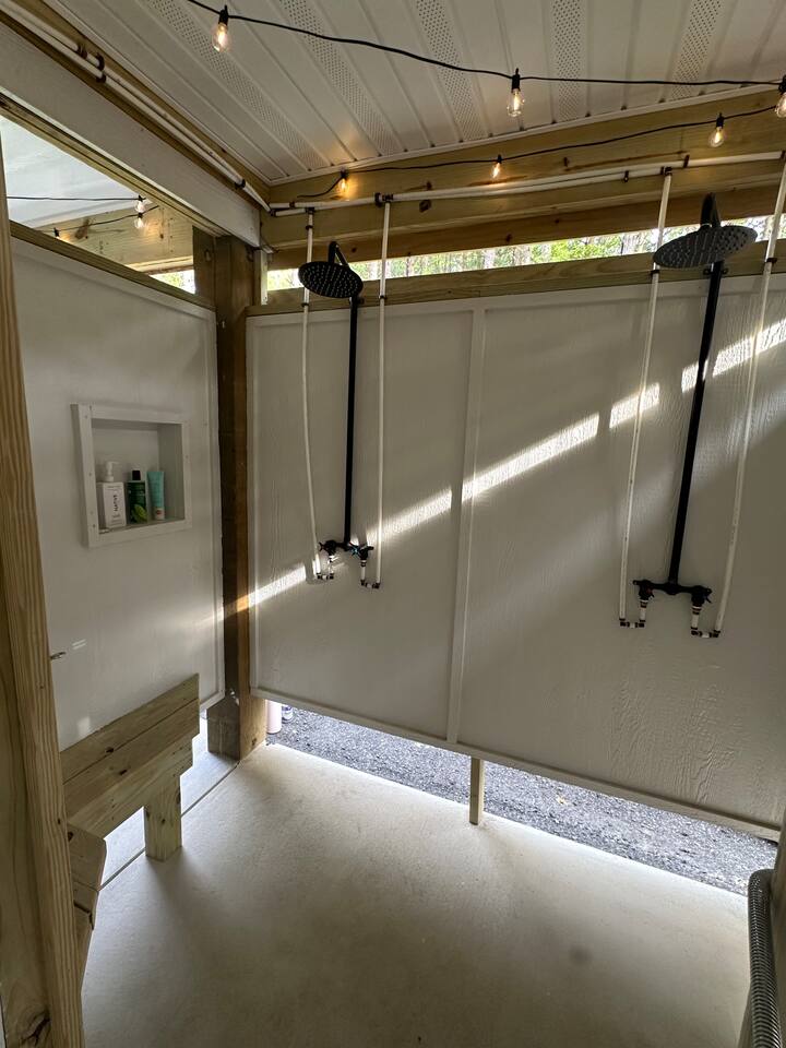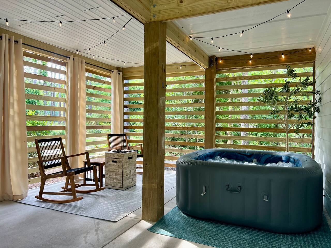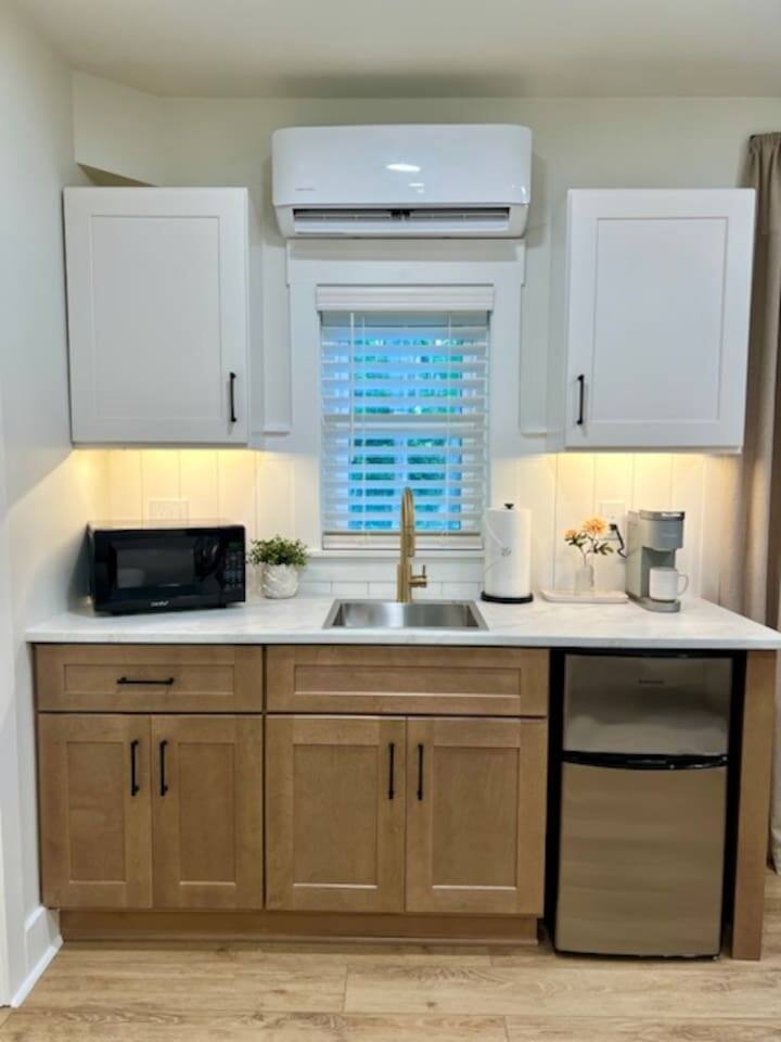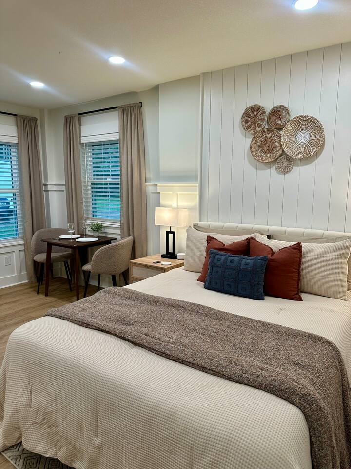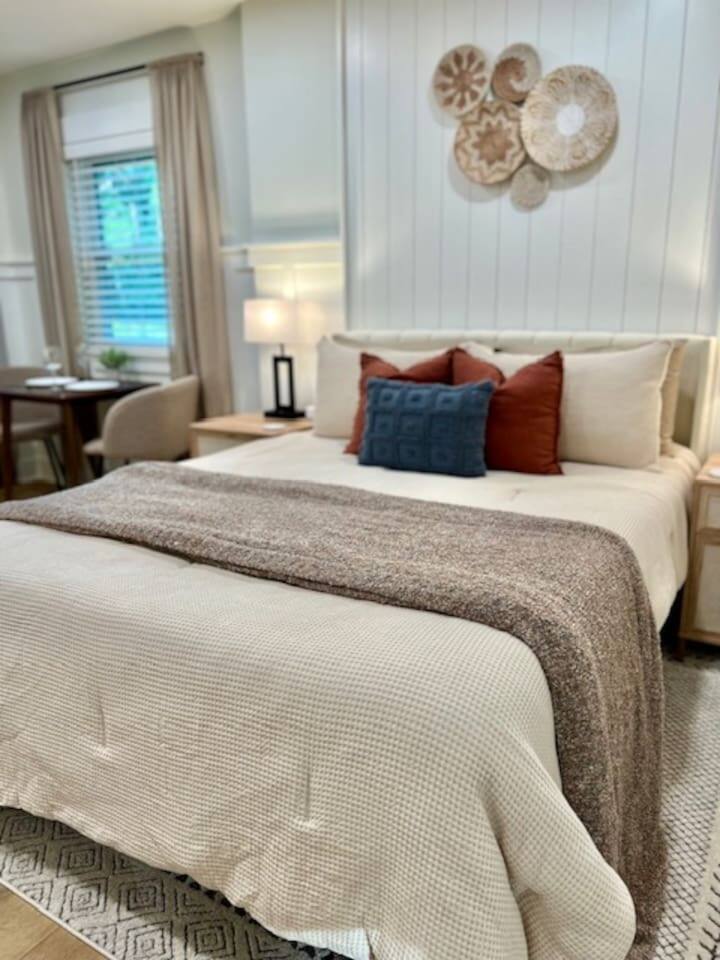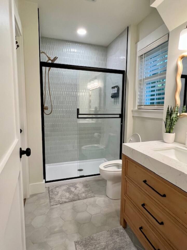 Welcome to Coastal Roots – A Nestled Couples Retreat built in 2024 in the Northern Outer Banks Whether you’re planning a romantic getaway, celebrating a special occasion, or simply craving quiet time to unwind, Coast Roots offers the perfect blend of nature, comfort & OBX convenience. Other Things to Note : We live upstairs however there is no connecting stairway into the downstairs unit and is completely separated. We insulated between floors and added quiet clips before drywall to reduce noise transfer so feel free to turn your tv up as loud as you’d like :). The Ground Level Apartment : • Private entrance • Plush queen bed with soft linens & Pillows • Bath & Beach Towels • Smart TV & high-speed WiFi • Climate-controlled comfort • Electric Fireplace that puts off heat Kitchenette : Enjoy everything you need for an easy, stress-free stay: • Mini fridge • Microwave • Keurig coffee maker • Toaster • Plates, bowls, mugs & silverware • Complimentary Coffee, Creamer, Tea • 2 Bottles of Water Bathroom : • Full private bathroom with tiled shower & glass doors. • Shampoo, Conditioner, Soap, Body Wash • 2 Bath & 2 Beach Towels • Iron/ Ironing Board • Hairdryer • Toilet Paper & Paper towels Outdoor Area : • Private hot tub • Gas fire pit • Comfy seating • Dual-head outdoor shower — perfect after a Beach day • Peaceful wooded views Prime OBX Location • 5 minutes to Wright Memorial Bridge • 12 minutes to Outer Banks beaches • 2 minutes to Buffalo City Distillery • 5 minutes to H2OBX Water Park • Close to Duck, Kitty Hawk & Kill Devil Hills • Nearby Starbucks, grocery stores, dining & Golf Courses Whether you’re planning a romantic getaway, celebrating a special occasion, or simply craving quiet time to unwind, Coastal Roots delivers a serene escape that feels worlds away yet close to everything. ⸻ Why Guests Love Coastal Roots : ✔ Brand new construction ✔ Hot tub + fire pit experience ✔ Ideal for couples & solo travelers ✔ Close to beach & OBX attractions ✔ Relaxing atmosphere