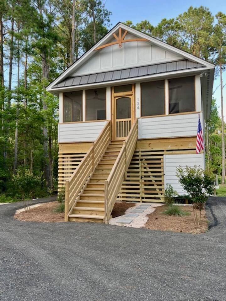 Welcome to Coastal Roots, a brand-new ground-level suite on 3 peaceful acres in the Northern Outer Banks. Ideal for couples or solo travelers, this nestled OBX retreat features a full bath, kitchenette, and private outdoor oasis with hot tub, gas fire pit, shower, and seating. Just 5 mins to Wright Memorial Bridge and H2OBX Water Park, 12 mins to the beach, 10 mins to Starbucks, dining, and grocery stores, and 2 mins to Buffalo City Distillery & Holly Ridge Golf Course.